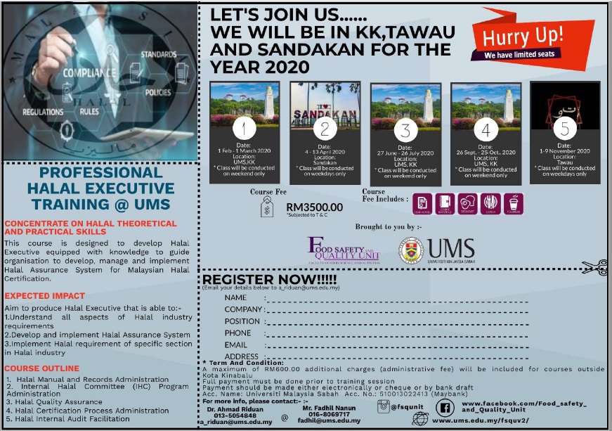 Ucapan Daripada: Pusat e-Pembelajaran | UMS Kampus Antarabangsa Labuan | Pusat Pelaburan, Endowmen Dan Wakaf | Fakulti Sains Makanan & Pemakanan | Pusat Jaminan Kualiti | Penerbit UMS