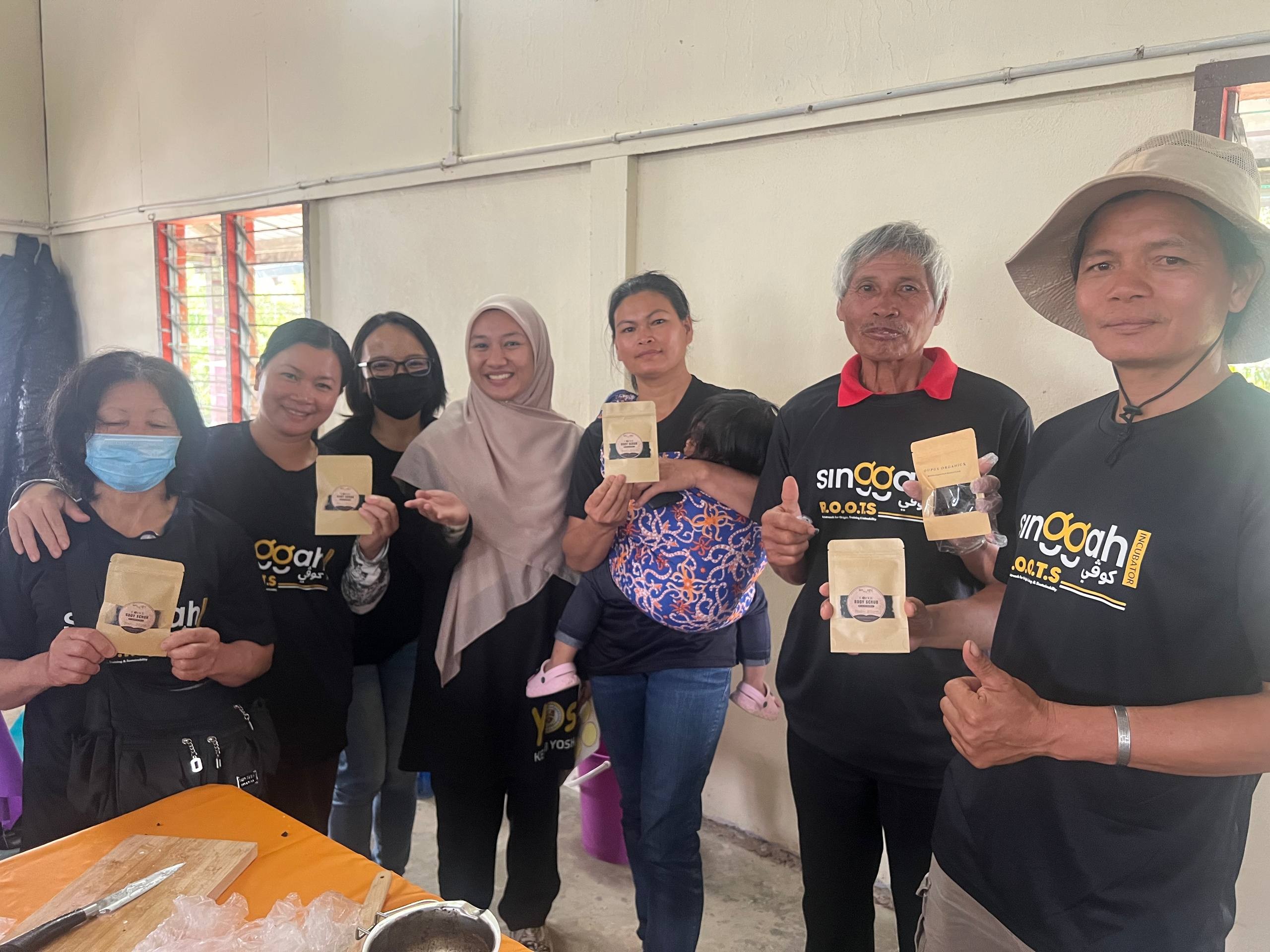 Melalui pendekatan inovasi “waste-to-income”, komuniti didedahkan kepada teknik penghasilan produk hiliran daripada sisa kopi dan sisa tanaman seperti sabun, lulur dan baja kompos.