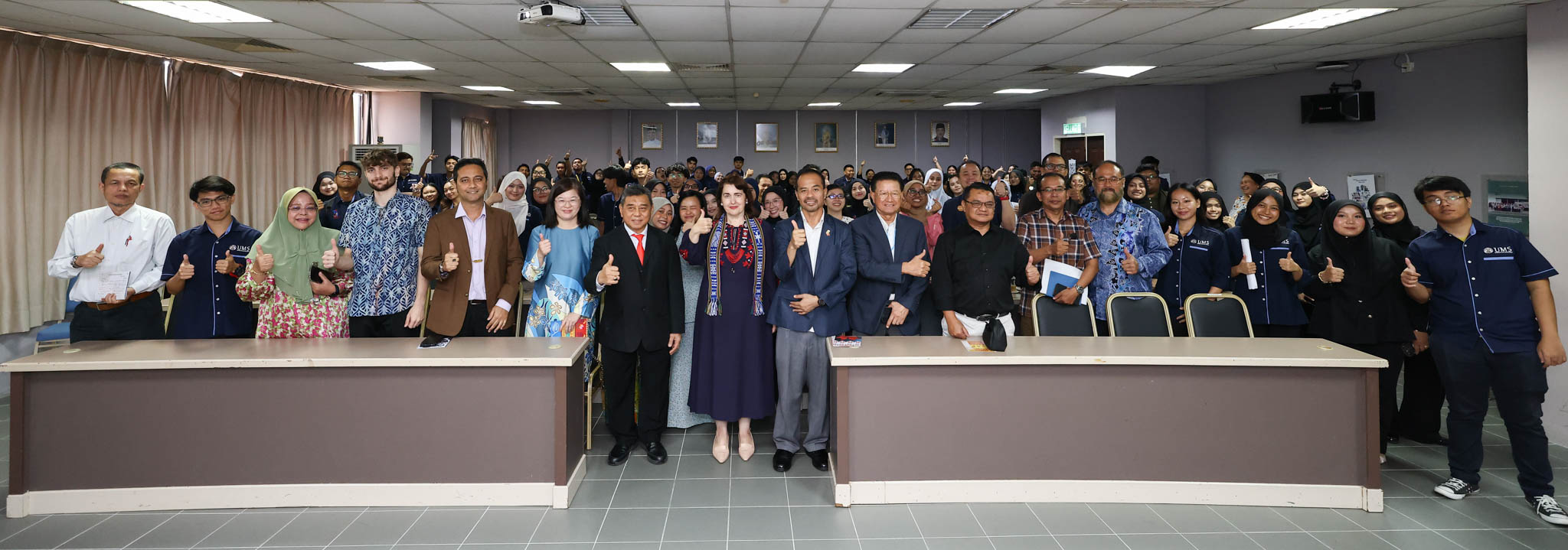 Hadir sama Dekan FSSK, Profesor Dr. Asmady Idris; Pengarah Pusat Pengantarabangsaan dan Penglibatan Global UMS, Profesor Madya Dr. Wardatul Akmam Din; dan Pengarah Pusat Komunikasi Korporat, Dr. Rizal Zamani Idris.