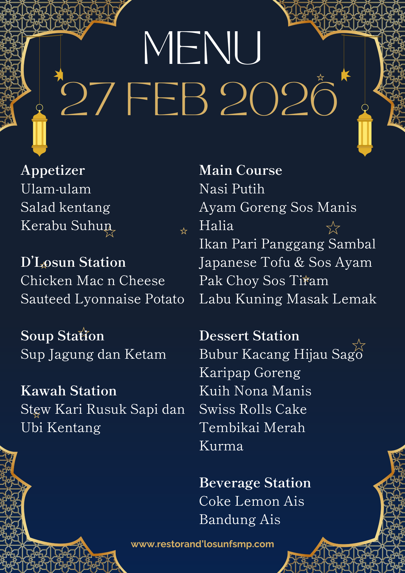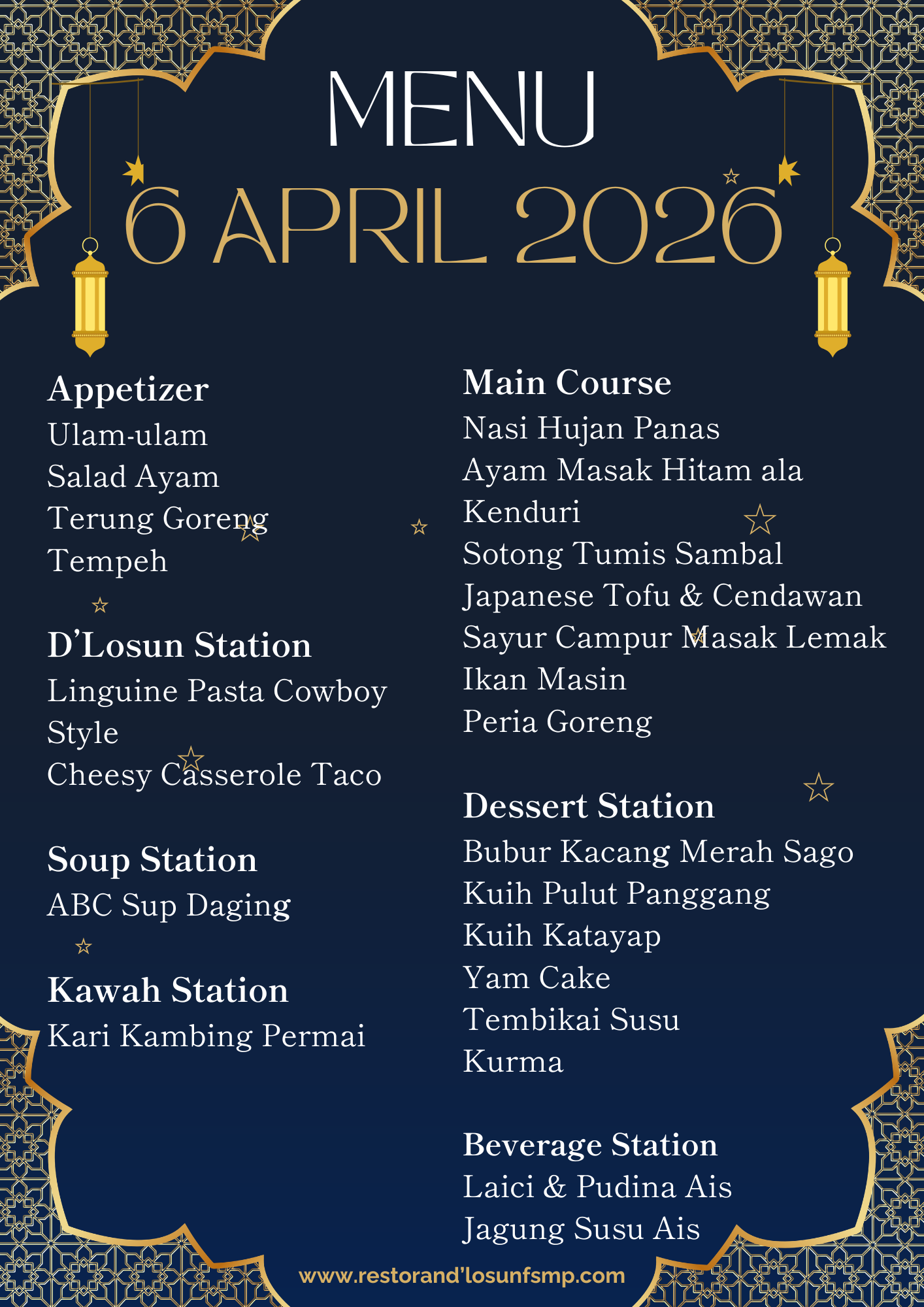 Jom nikmati juadah berbuka puasa bersama keluarga dan rakan-rakan di Restoran D'Losun FSMP dalam suasana penuh keberkatan.