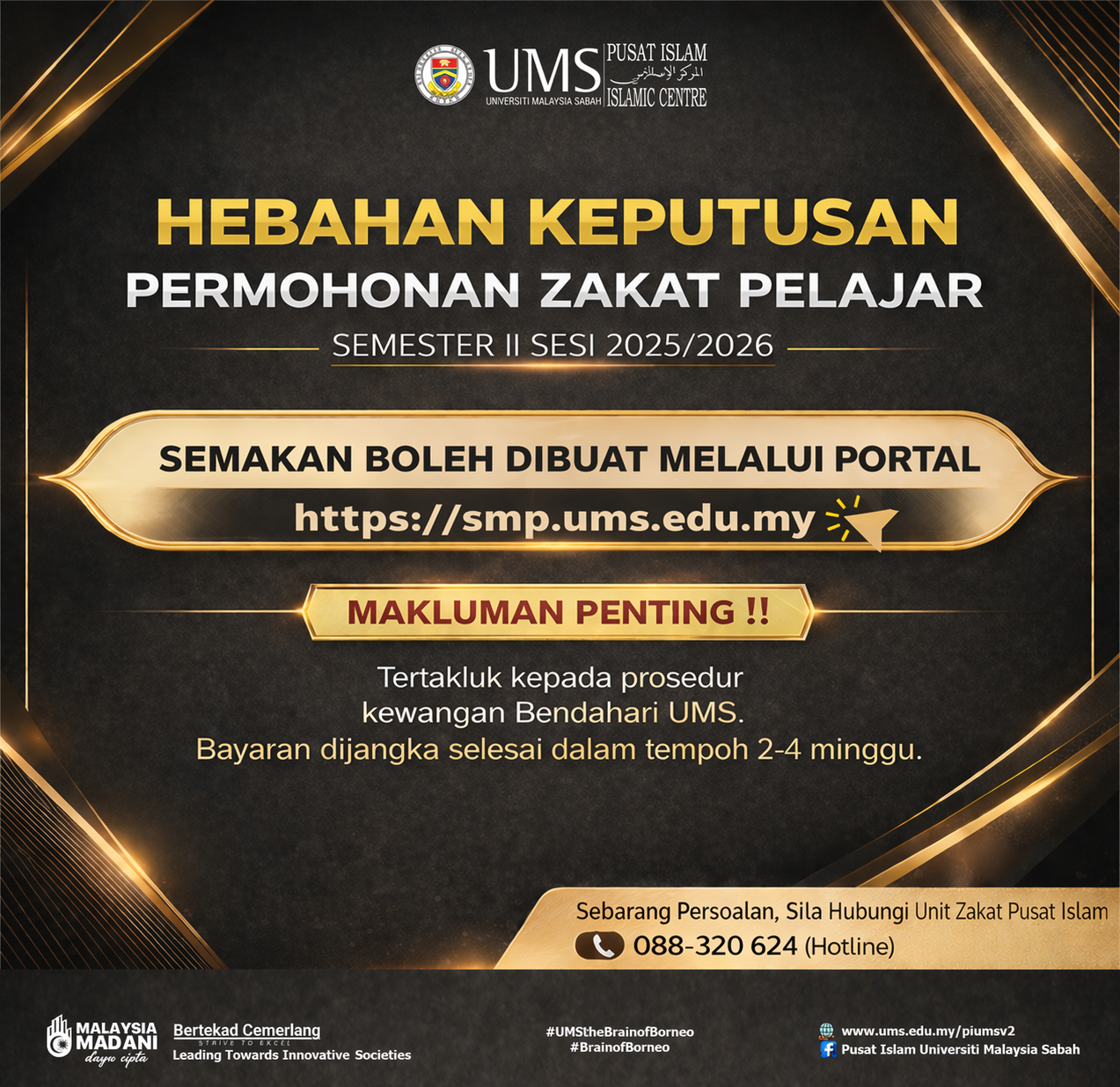 Pengumuman Daripada: Bahagian Pendidikan dan Zakat, Pusat Islam UMS