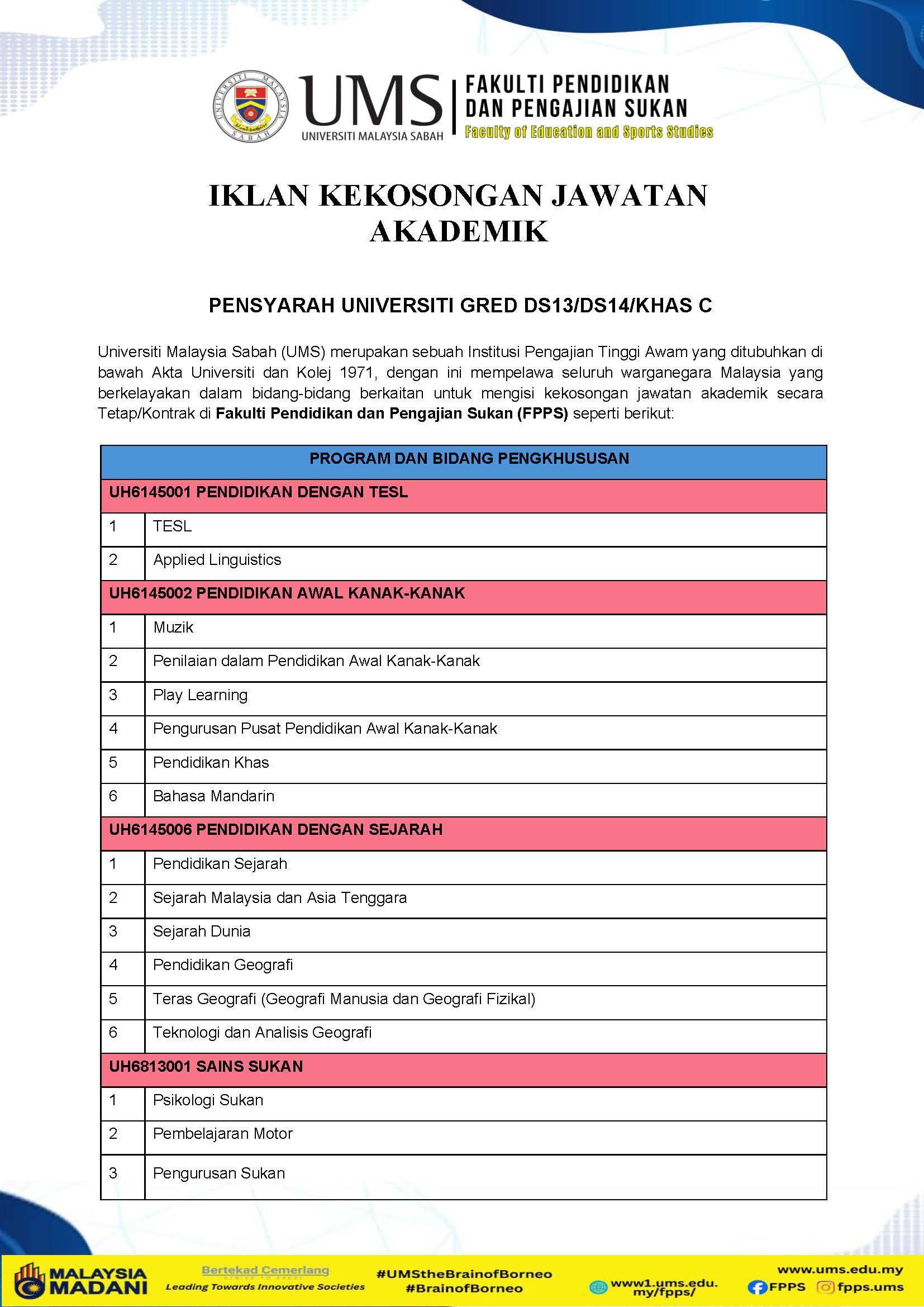 Pengumuman Daripada: Fakulti Pendidikan dan Pengajian Sukan (FPPS)