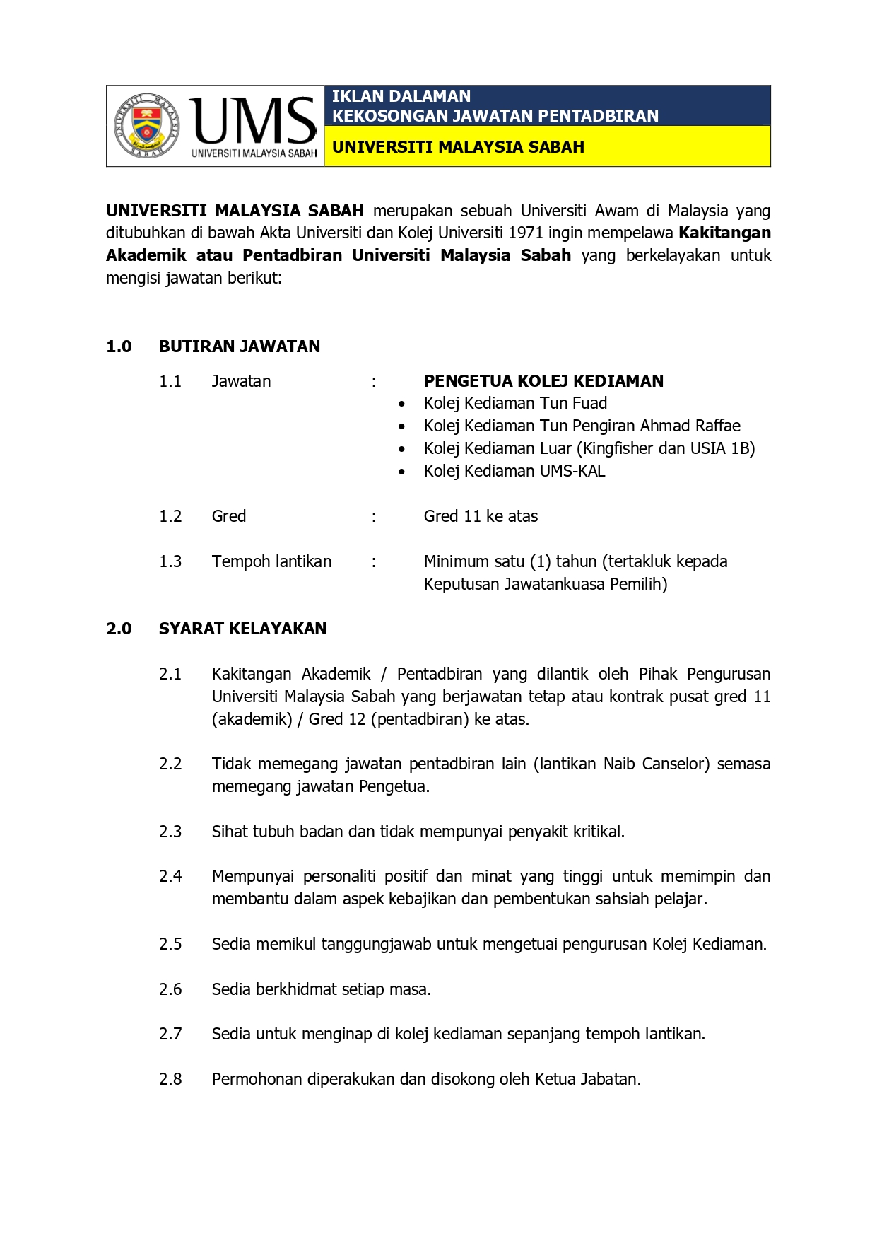 Pengumuman Daripada: Pusat Pengurusan NR dan Fasiliti Perumahan Pelajar
