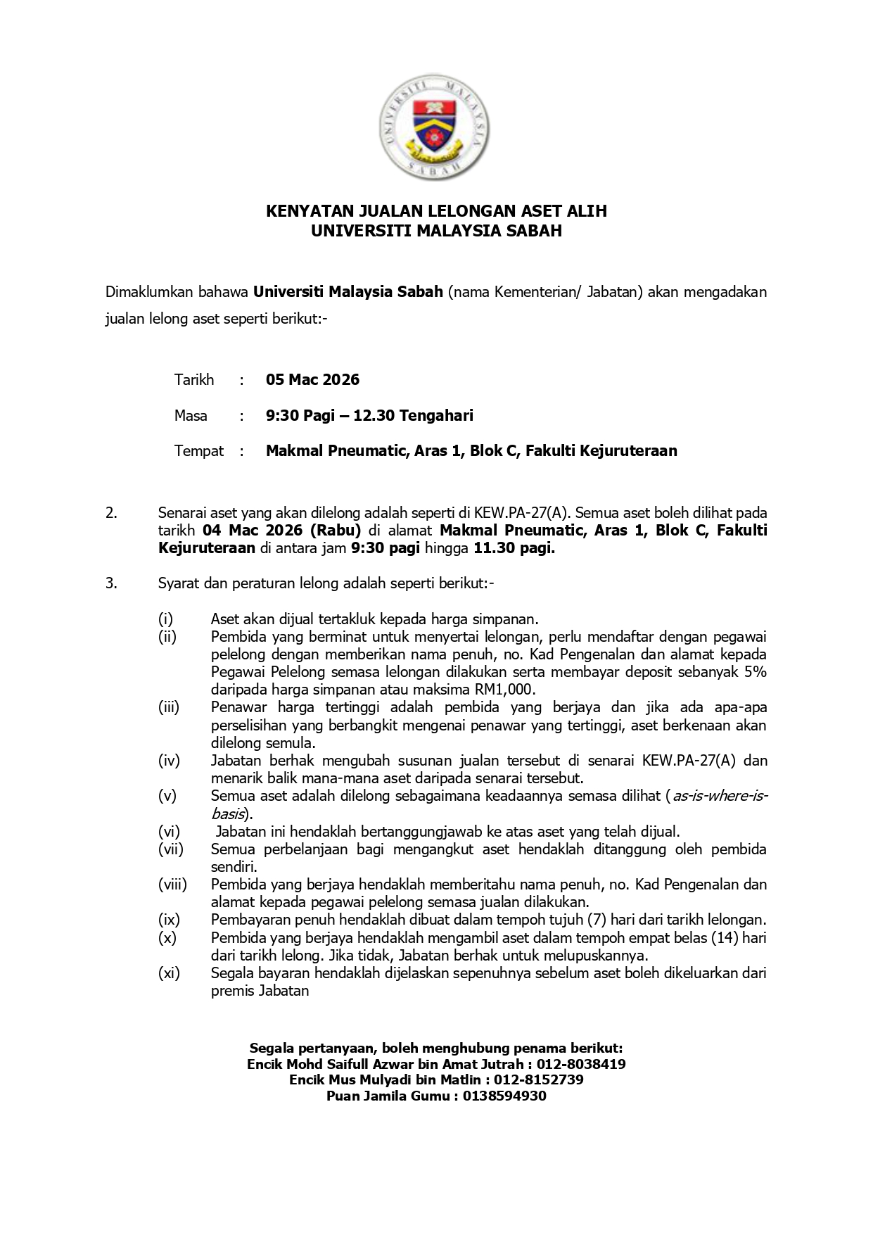 Emel: adminkal@ums.edu.my