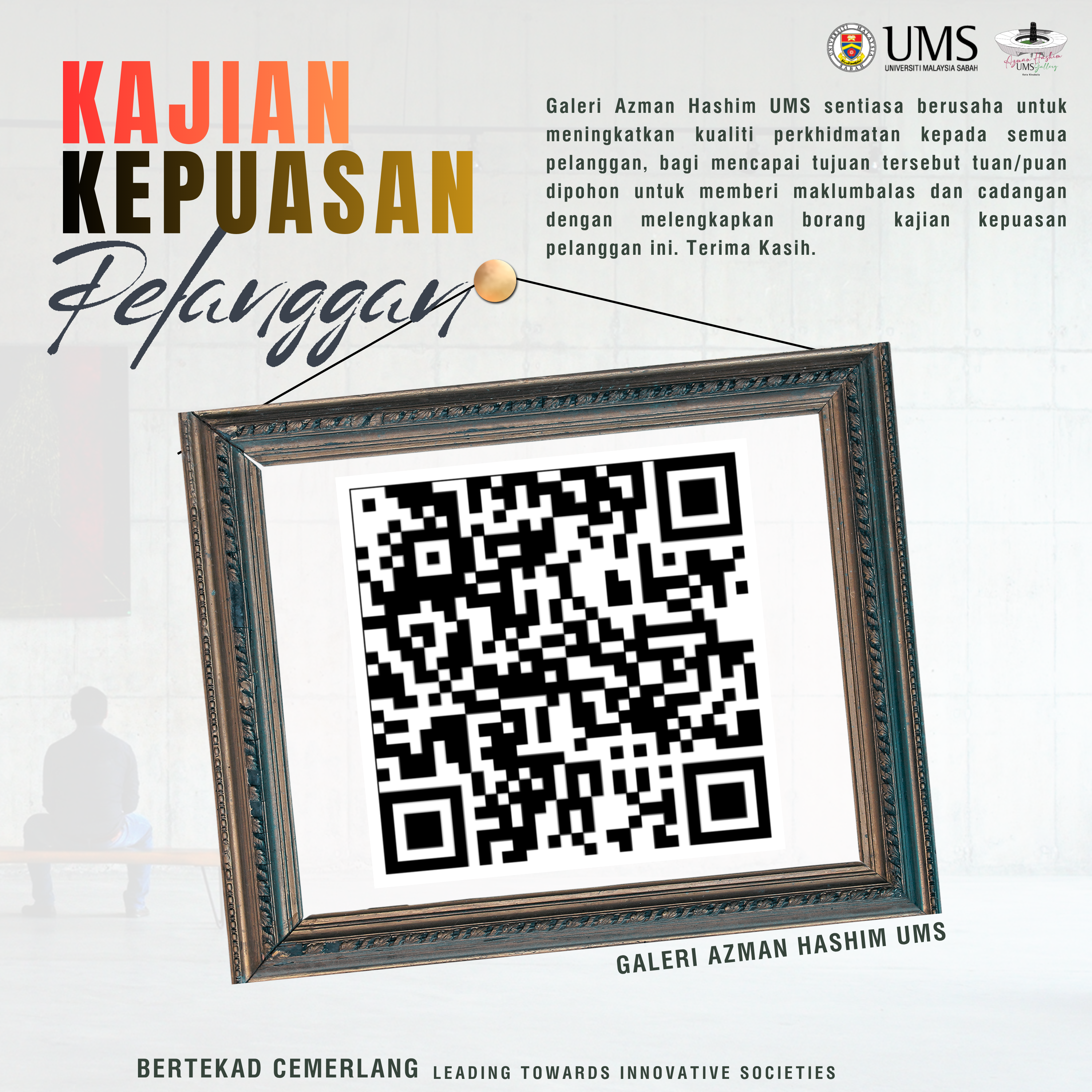 Galeri Azman Hashim Universiti Malaysia Sabah (GAH-UMS) ingin mengucapkan ribuan terima kasih kerana terus menyokong GAH-UMS. Bagi tujuan meningkatkan kualiti perkhidmatan GAH-UMS, mohon jasa baik YBhg. Datuk/Datin/Prof/Dr./Tuan/Puan agar dapat melengkapkan kaji selidik kepuasan pelanggan GAH-UMS dengan mengimbas QR Kod yang dipaparkan atau melalui pautan berikut ;