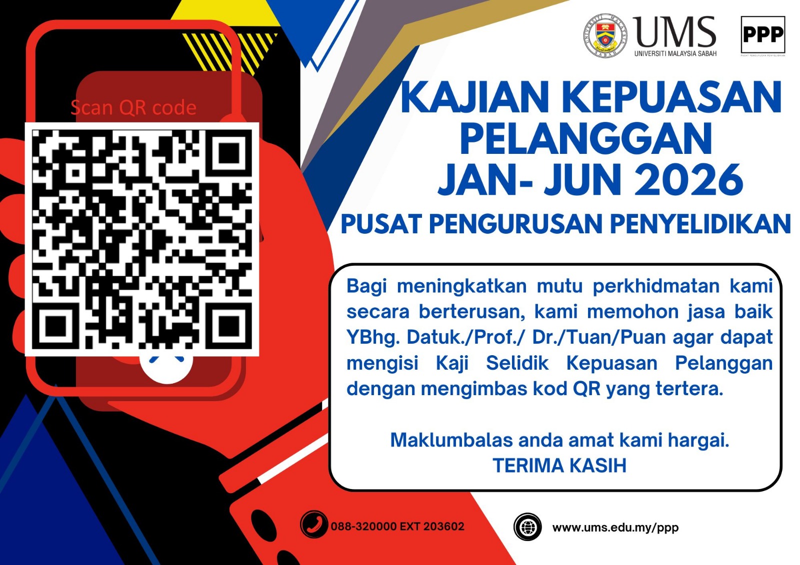 Pusat Pengurusan Penyelidikan ingin merakamkan setinggi-tinggi penghargaan atas sokongan dan kepercayaan YBhg. Prof/ YBrs. Dr./ Tuan/ Puan terhadap perkhidmatan kami.