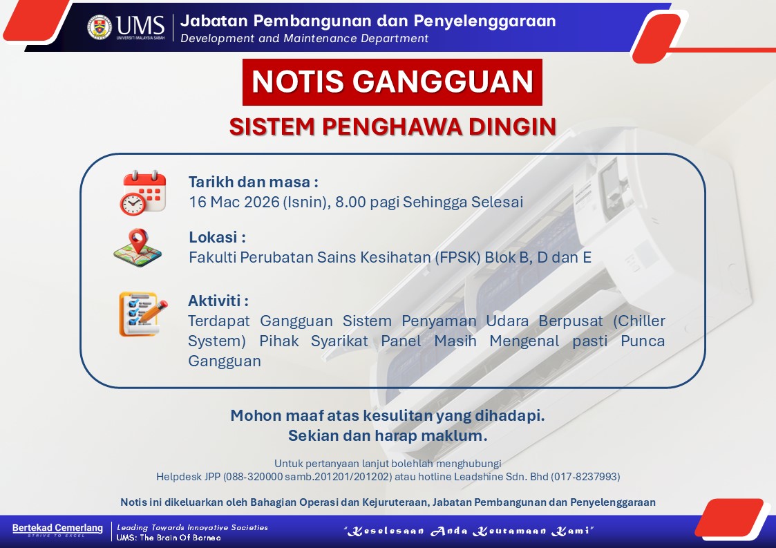 Pengumuman Daripada: Jabatan Pembangunan dan Penyelenggaraan (JPP)