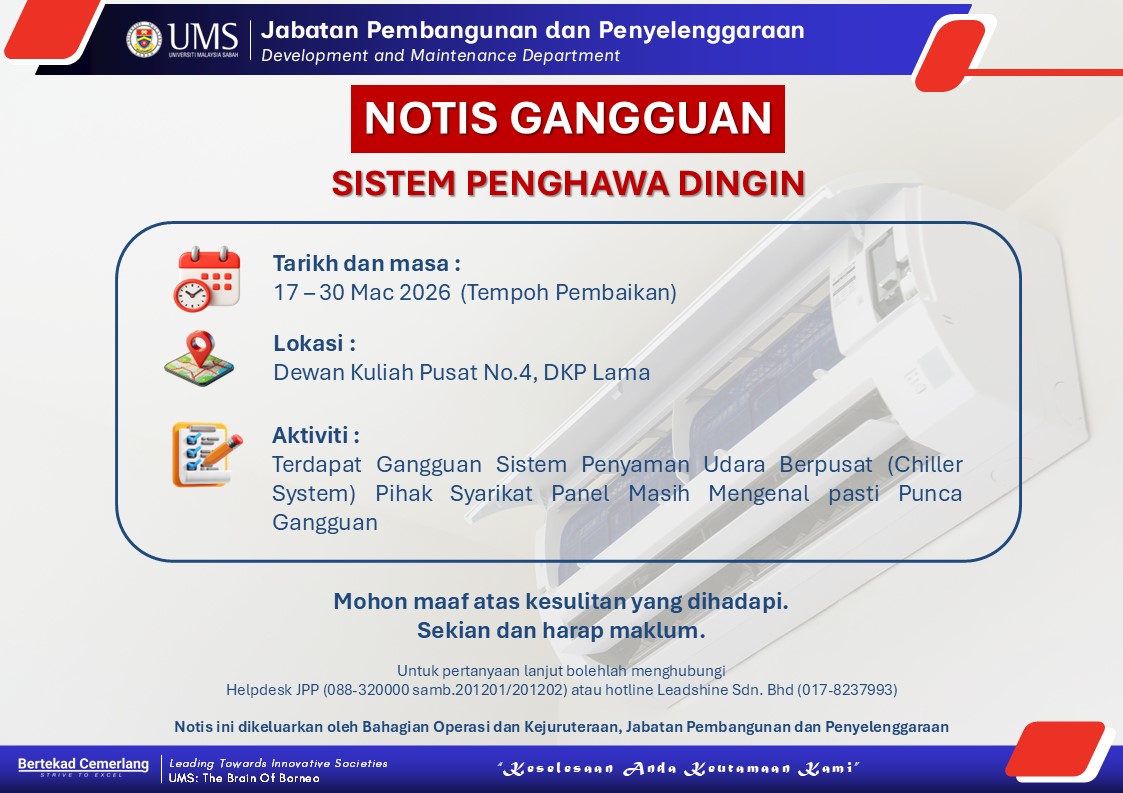 Pengumuman Daripada: Jabatan Pembangunan dan Penyelenggaraan (JPP)