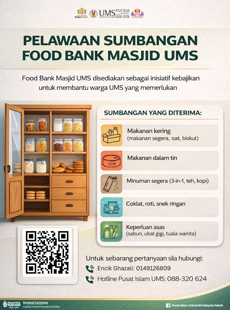 Kami menjemput seluruh warga UMS dan orang awam untuk bersama-sama menyumbang ke dalam Food Bank Masjid UMS.