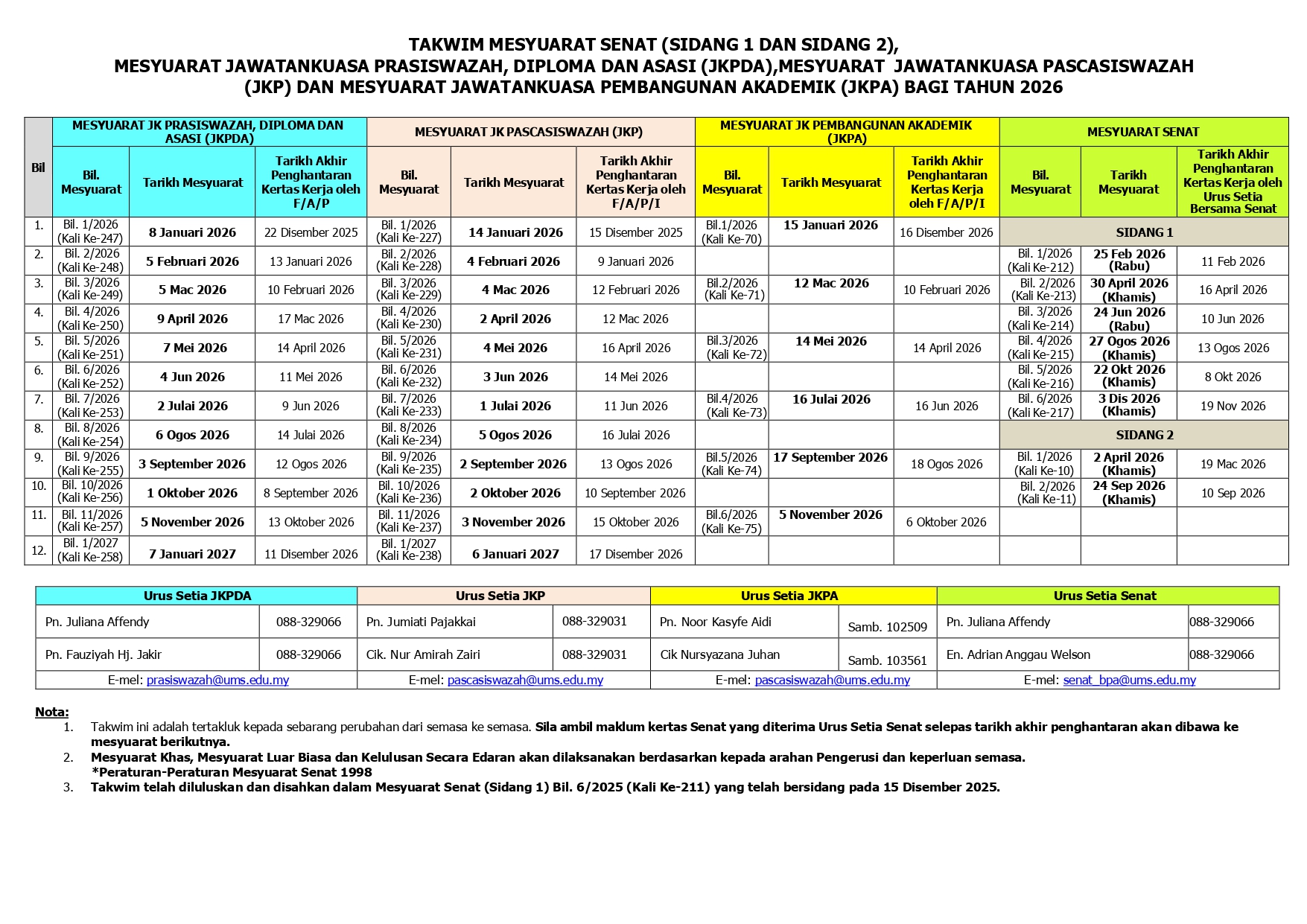 Dimajukan bersama ini takwim mesyuarat berkenaan di atas untuk rujukan lanjut pihak YBrs. Prof./Dr./Tuan/Puan.