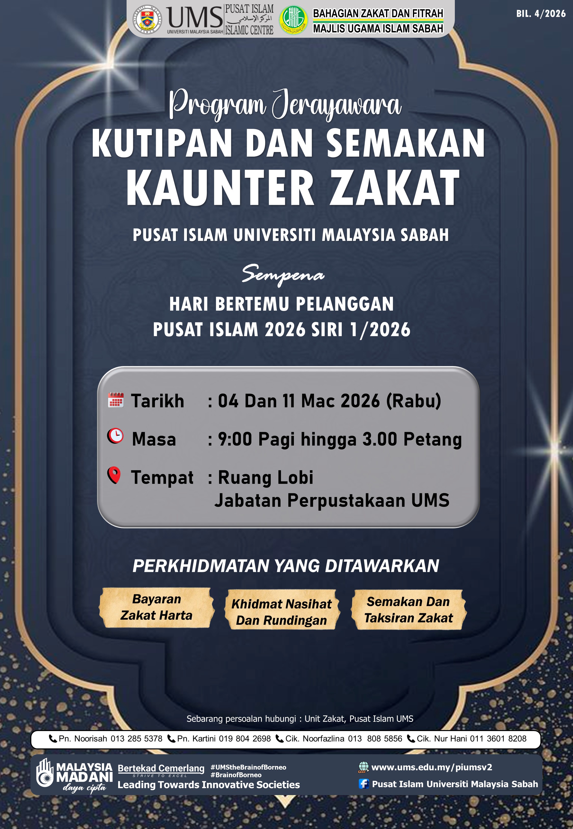 PROGRAM JERAYAWARA KUTIPAN DAN SEMAKAN KAUNTER ZAKAT PUSAT ISLAM UNIVERSITI MALAYSIA SABAH BIL.4/2026
