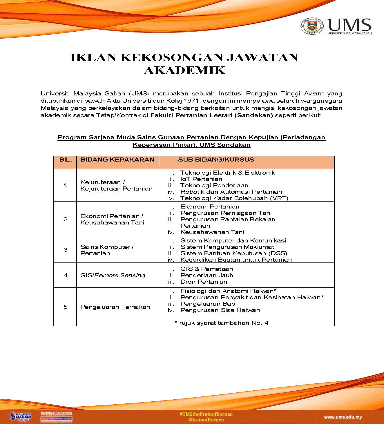 Iklan Kekosongan Jawatan Akademik Fakulti Pertanian Lestari